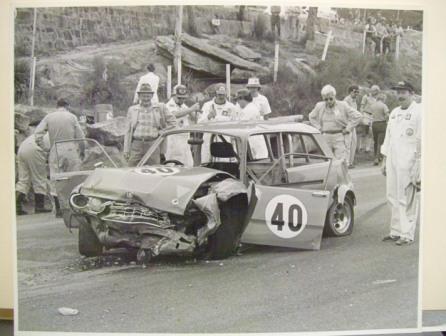 Love the rear view of the "early" Bellett at the crash scene. KB