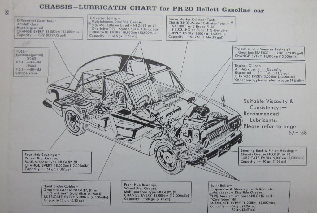 Bellett_EST wrote: Could anyone tell me please, what's the oil capacity for the engine, gearbox and differential? What type of oil should be used in differential?
