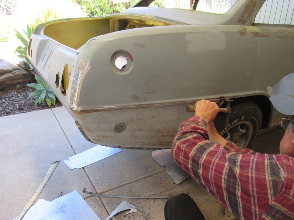 A good days work today and I can say we have now completed the drivers side with rust repair work. Next week we will complete the passenger side rear quarter and then move onto the tail lights in the back beaver section.