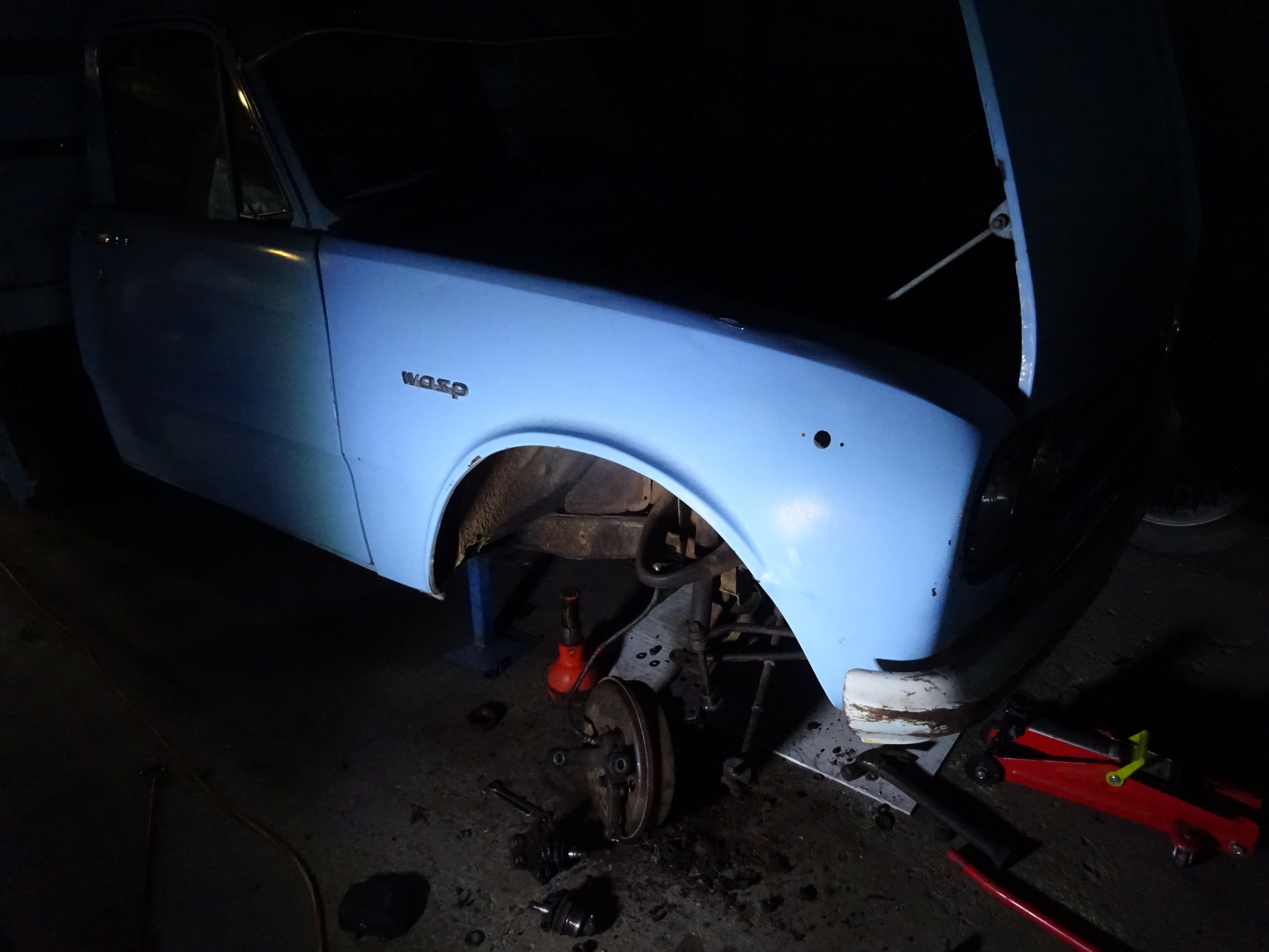Today I started the process of changing the Dubbo Wasp's upper and lower ball joints....... Jeez Louise!! 52 years of hard farm labor sure does make life difficult, 3 hours later and first lower ball joint still isn't out  First bolt was a bit of an effort but second bolt came out sweet as a nut, last two are locked tight. Packed in with a lifetime of dust, rust, grease and stubborn hard yakka attitude Plan B: I got one of them loose with a bit of help of a bottle torch and a can of WD40 but it still hasn't pulled completely out yet..... The last one may require Plan C - A couple of beers and a few Bacardi and cokes to loosen ME up a bit before I go hostile on it's ass ......and that's just the first one It seems that every component in the front end is original and flogged out, except the brake line on drivers side which has been replaced at some stage.
