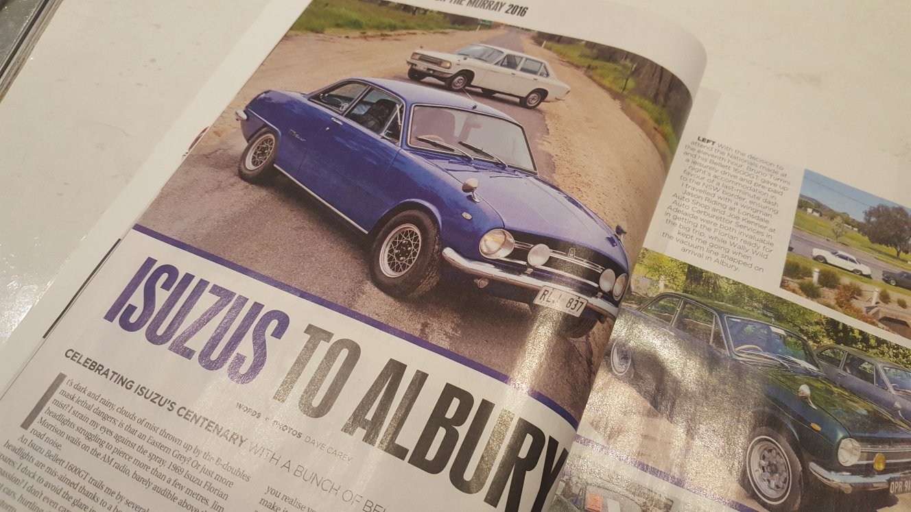 Hey guys, Let me tell you a little story. Back when I got into Belletts, it was about 1997 and I was around 19 years old. Myself and Ross Smith (2ldohc) had gone halves in a clapped out 1967 Auto which had been traded in at a Subaru dealership in Verdun in the Adelaide Hills. We paid $100 each for it, knocked the dealership down by $100 and drove it away with rego. I will point out that I'd lost my license for dangerous driving a few weeks earlier, but we won't go into that. I wanted to learn more about this strange little car. Together we bought two more which eventually became parts and since then I've bought and sold a few more. Every month, I would buy Unique Cars magazine and check straight away if there was a Bellett article in there, but there never was. Never a road test, resto story or history piece. Nothing, zero, zip. Over the years, I came to realise that Belletts just aren't on the radar; even when people are talking about the weird, strange, eclectic and forgotten, Belletts barely rated a mention. In 2010, myself and the aforementioned Ross decided to set up an importing business, Garage of Awesome. We thought that with the dollar good against the US, we'd make a killing, quit our jobs and drive around in cool cars. Well needless to say, working a small business around your normal daily life isn't that easy and it didn't help that the Australian government's malaise when it came to processing import applications almost broke us. Wanting to ensure people kept returning to the site, I decided I would start writing articles and uploading them every few days. I also wanted to educate, inform and entertain, styling my writing a bit like "Cracked.com", but with cars. After about three years of articles on everything from cars we'd spied for sale, cars we'd spotted in real life and 'list' pieces on the various machines that we'd come across on our Internet travels, a mate of mine suggested I apply to Telf from Street Machine as he was looking for fresh contributors. I got the gig and wrote an article on a Divco van that had been converted into a streeter with monstrous V8 and rear wheels that were, wait for it, 20in by 20in! A small piece on a 27 litre Merlin-powered lawnmower followed and the rest is history; I've now written 44 articles for Street Machine that have been sent to print! This also opened the door for Unique Cars, for whom I wrote about the Bay to Birdwood last year, followed by five more articles including this latest one; the six-pager on the Bellett Nationals in Albury. So finally, I can open a copy of Unique Cars and find an article on the mighty Bellett; and not a small article either. It took some negotiation to get the six pages, plus a shortened deadline which meant I put in a couple of late nights. I'm immensely proud to have this article printed and I'm very happy about the people who have been featured. As discussed previously, I did send Unique Cars copious photos and I'm not in editorial control of what they run or where they run it. Also I would like to point out that the more beautiful Belletts of this nation have received the odd photo when combined with a NSW or Queensland show; mainly because the clubs in those states are so active and get out to plenty of events. I wrote up several "It's Mine" breakouts and requested Unique Cars run as many as they could, because they're all deserving of having their cars in the sun. Belinda Wild - a third generation Bellett enthusiast, her '69 Deluxe is a rare car in a rare colour in a rare condition! I wanted to include her as she represents the next generation of enthusiasts for these cars which, sadly, is an ever diminishing amount of people. Stickman - one of the Bellett world's greatest characters. He has driven more miles in his Bellett in the last few years he's had it than some will travel in theirs EVER. His enthusiasm for getting in and driving his car is unbounded. There is nobody in the world who wants to drive for as far and as long, then finish the day sleeping in the Bellett he just drove a thousand miles in! Terry Hill - bought two cars worth of bits; one sedan and one GT, then worked out how to put it all together himself with no prior car restoration knowledge. His PR90 is not the tidiest PR90 in the world and it's got some wrong bits, but without him, there would be one less PR90 in the world and his car would still be in bits or pressed flat by now. The Smith Brothers - the most enthusiastic Bellett family in the world, surely. I wanted those boys to get some exposure, because they've been there since day one and are still there today. Gary Carter - another bloke who has been there since day one, he's one of my favourite characters. His incredible stories and vehicle knowledge makes him a pleasure to see every year. I'm jealous that Matt Smith lives so close to Gary and can experience the insanity of his conversation more often than most. Most of all, featuring Gary gave an opportunity to give some exposure to the rare Isuzu 117 Coupe, illustrating that Bellett enthusiasm is far from capped at Belletts only! I also sent an "It's Mine" on Glenn Percy's Bellett 1800 Sport; not only has Glenn been around these cars for a long time, his Bellett Sport two-door sedan is something else we've never seen and is (almost) a one-of-a-kind in this country, however editorial limitations meant that Unique Cars did not run it. Although every person's car was photographed, not every photo got run in the article. All the main award winners got a mention which is important, but I also had to dedicate words to the experience and the history of the event, something one doesn't have to do if they're covering a Mustang event for the billionth time. So go out and get a copy; it's the largest Bellett article I've seen since Tom Amos and Brett Wild respectively had their cars covered in the now-defunct Australian Classic Car magazine, and given the popularity of Belletts on the wider scale, possibly the last we'll see 