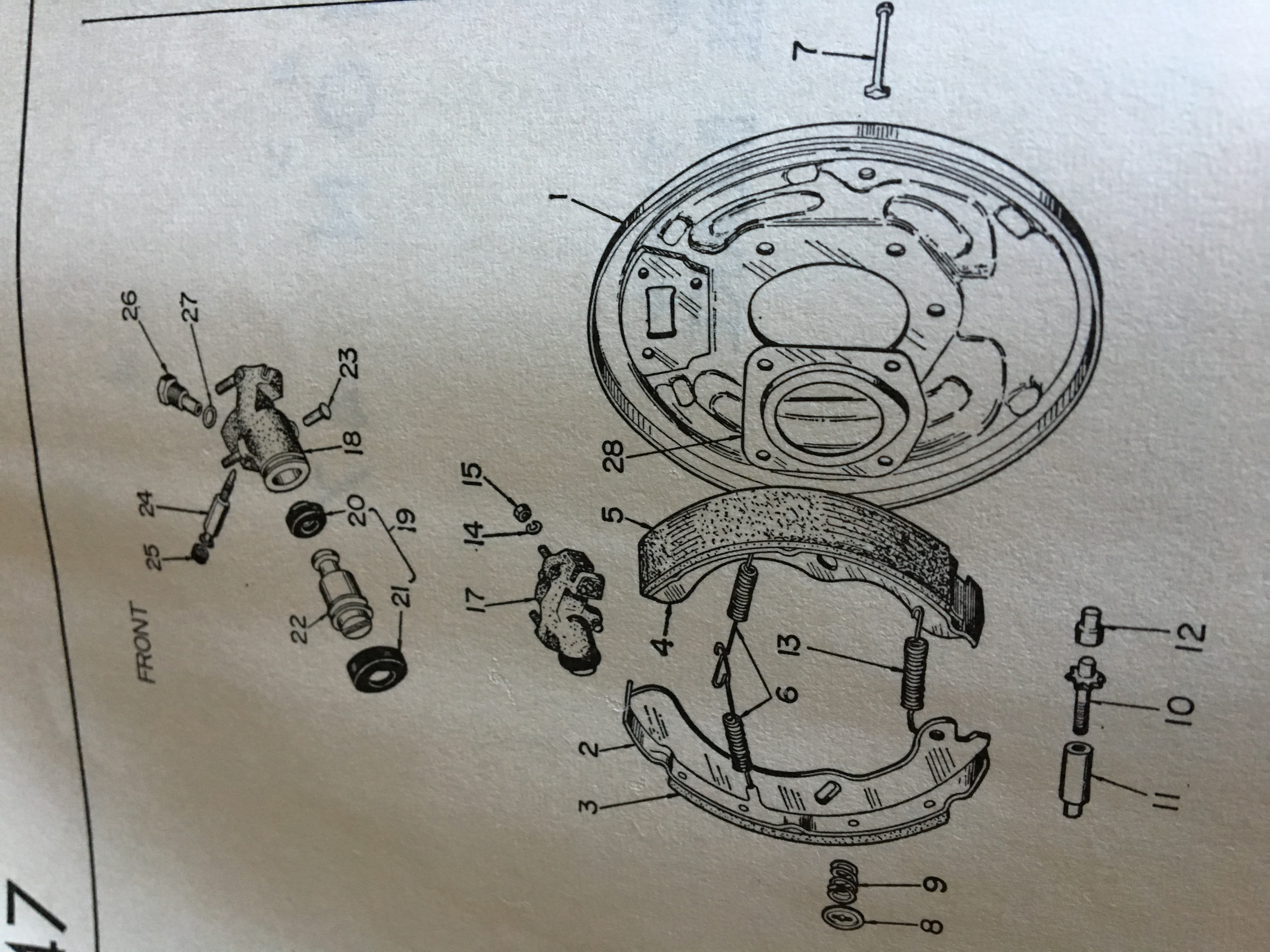 How are the bits you seek going ? This is the brake diagram. Do you mean the the wheel cylinder as in 17 on front and 42 on the back. Let me know I will douce the part number for you