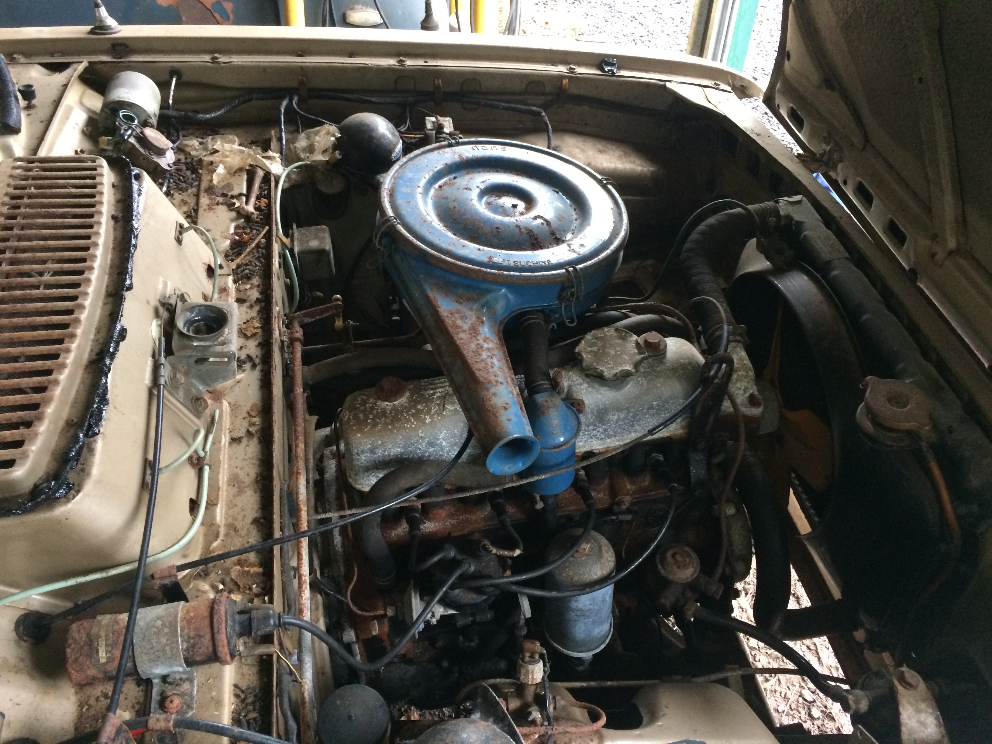 Greetings from the Apple Is One beautiful Gold '67 has mad an appearance plus a blue 66 'spares car' The Gold is a one owner with about 35k miles Engine turns by hand and can feel compression No rust rear quarters Straight panels Deluxe model 4 speed floor manual After market High back seats Could easily be a runner (last started 15 yrs ago and garaged/container/shed since) Small rat attack under bonnet and interior