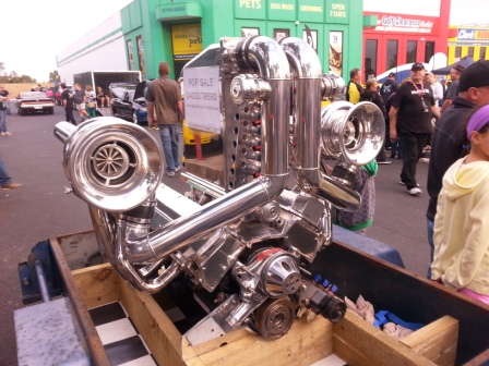 For those who think their Bellett is underpowered, a twin turbo'd V8, reputedly with 2600HP was for sale. You can see cubic dollars in that motor !