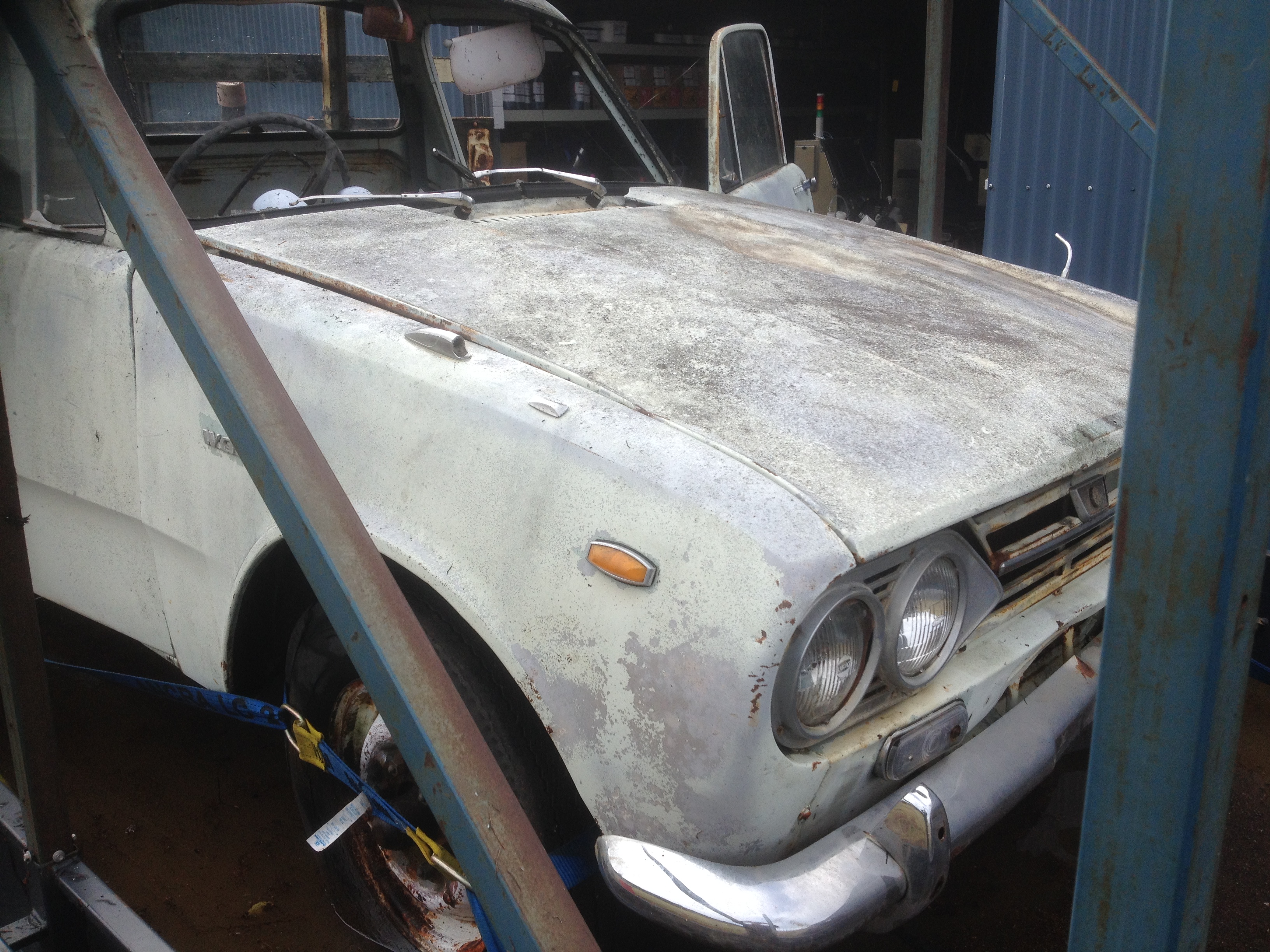 Long wheelbase! Woo hoo! What an absolute beauty. Looks pretty complete, even the reversing light which only needs a lens. None of mine have one of those. And not very rusty looking, the floor must be sound, 'cause all the gunge hasn't fallen through. Hang on, its Farmer's ute?? Oh, its a farmer's ute. Yep, some improvised repairs there. So, good going, Wasp number 3. That matches the Bembokabellettbloke. Most exciting next step is to fire him up and see how he goes. Thanks for showing, Cheers, Matt.
