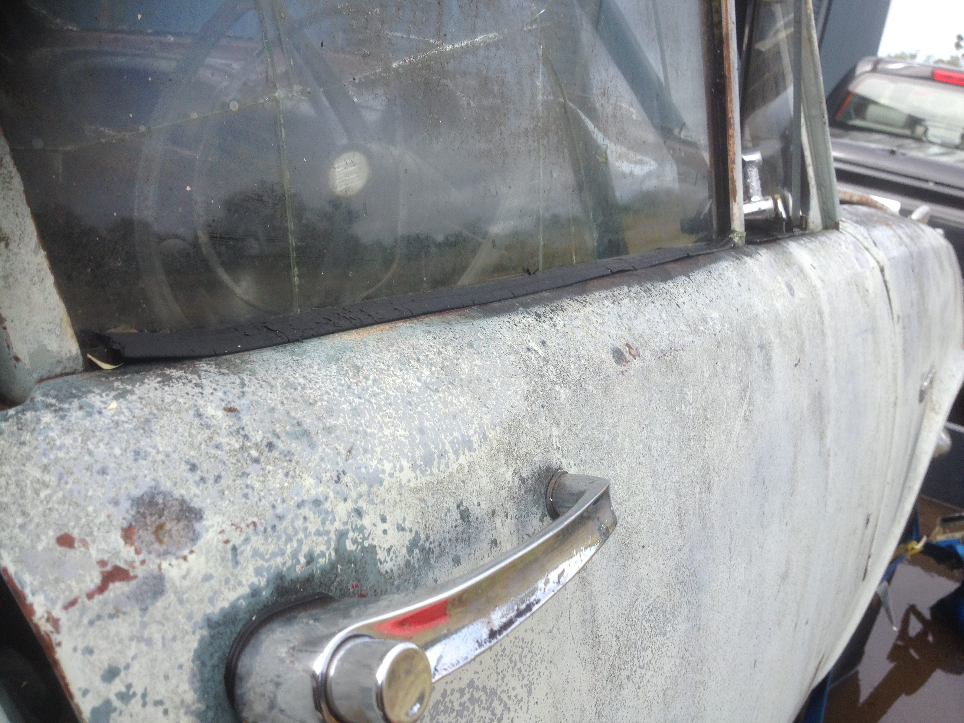 The drivers door came off a deluxe somewhere along its timeline, noting the filled holes where once was the clips to hold the trim.