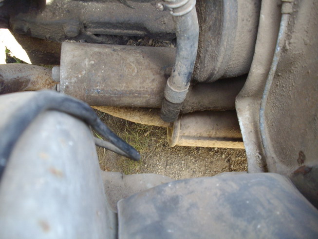 Had a spare hour, so I checked the fuel tank - Dry. Rinsed it out - no rust!  Removed the mudwasp plug from the cut-off fuel line & blew back to the tank - clear! Put a filter in-line & some fuel in the tank. Turn key - start - run - idle - sweet! Hmm, Brakes? Pedal was stuck hard when I got it, so a week ago I put some fluid in. Pedal freed up, so I got Rhys to help me bleed em out. Now got pedal! Surely they wont work - It's been 30 years!! Start motor again, back out of carport - apply brake. Progress slows! Drive down driveway - apply brakes. Progress slows pretty well! VERY EXCITEMENT  Drive back up driveway - 1st gear - 2nd gear - 3rd gear - no more driveway - apply brakes - Almost skid in dirt!! VERY AMAZEMENT! Now for the freaky bit. This is the worst bit of the car - pummelled & rusted subframe below radiator - Attachment: