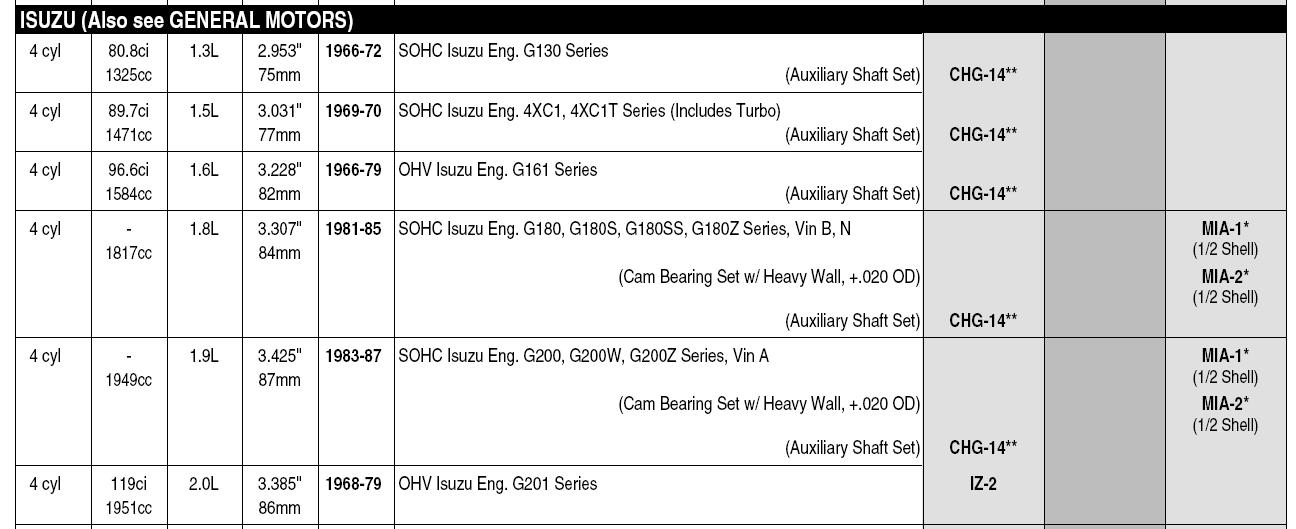 http://www.mellingdurabond.com/Portals/3/pdf/2009%20Catalog-Interior_r3.pdfIn my (Dave's) GT we couldn't find new cam bearings so refitted the cam. The bearings appeared OK anyway.