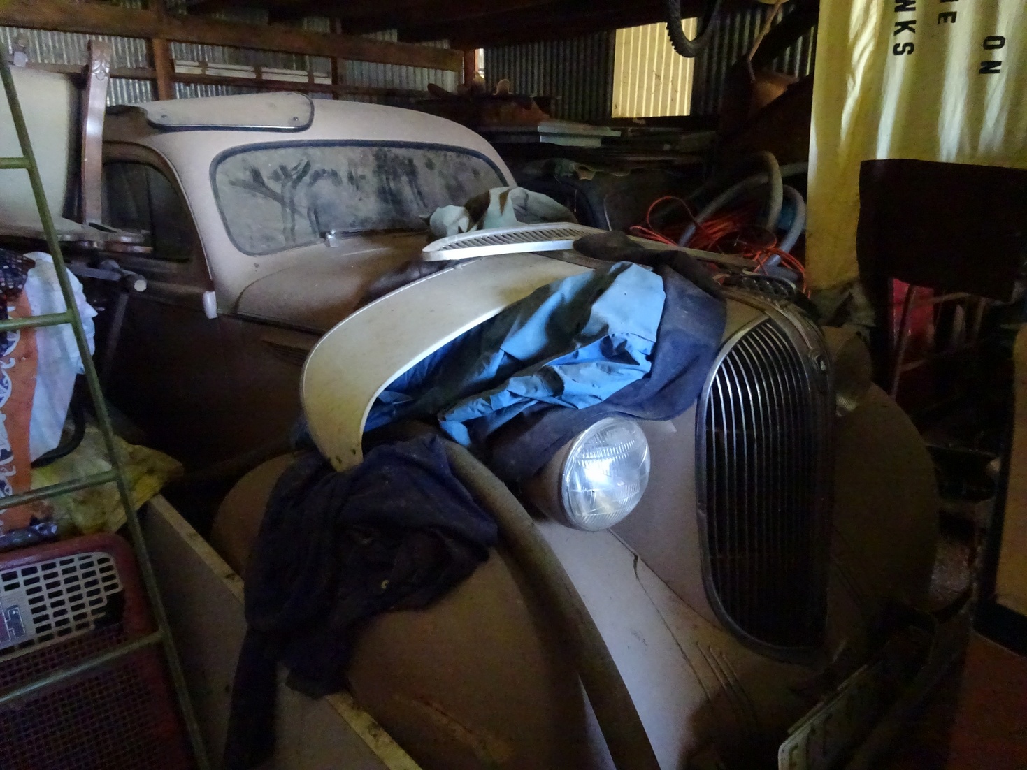 OK OK here are some pics from Russel's place He had stuff everywhere, in sheds, in paddocks, in containers, under tarps and even in gardens. The very first thing I spotted was this garden Beetle. It is my absolute favorite model Beetle and one I tried to find for myself years ago when I had them, before Donkey came into my life. It's a 59 Beetle, the last model with the semaphores, first of the bay windows (first after the ovals) Attachment: