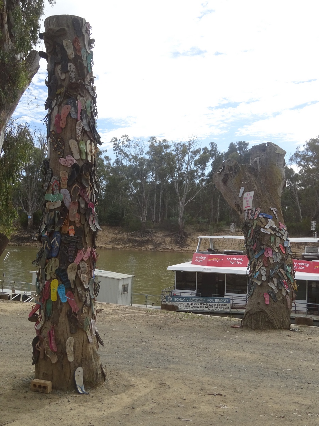 A must visit in Echuca is the "Thong Trees" down by the paddle steamer docks..... and who better to have in your company at such a sacred place than the one and only Mr Thong himself - GT Orphange, thong aficionado extraordinaire (he even tried a couple on for fit) Attachment:
