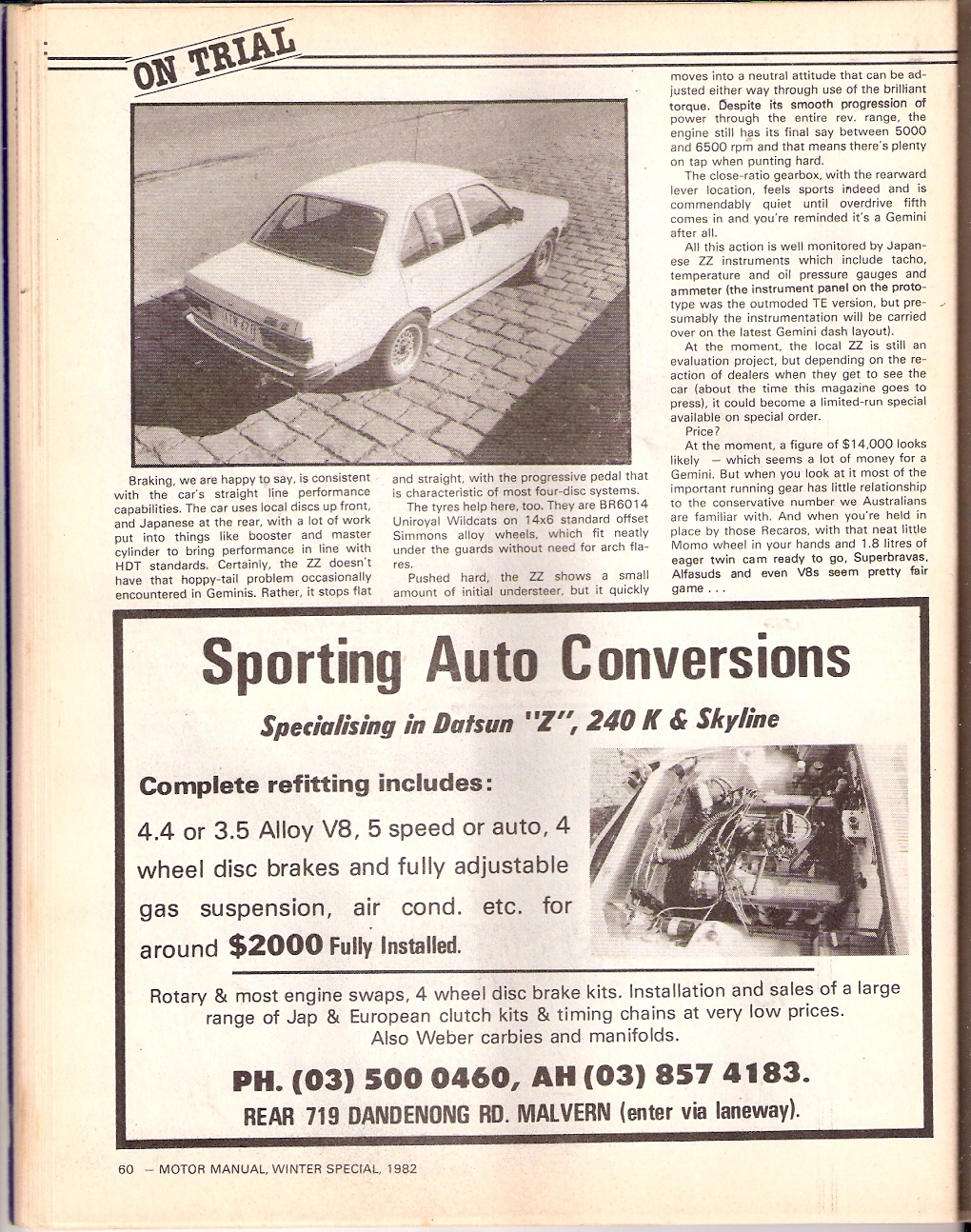 Holden Gemini ZZ - Motor Manual Winter Special 1982