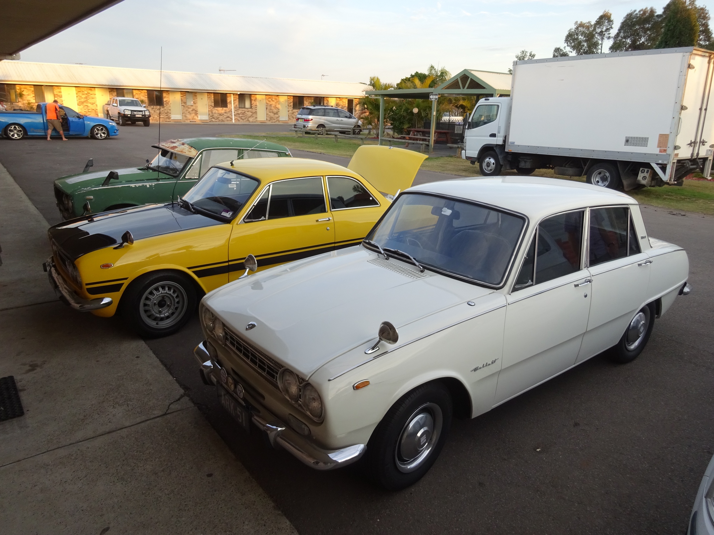 Car(s): Doris, AuntyMary, Shrek, Jimmy; GT, Wasp, Flo & Sed unrestos; 65 Elf; 82 Rodeo, 60 TX550, 72 Sport, & a Sigma.