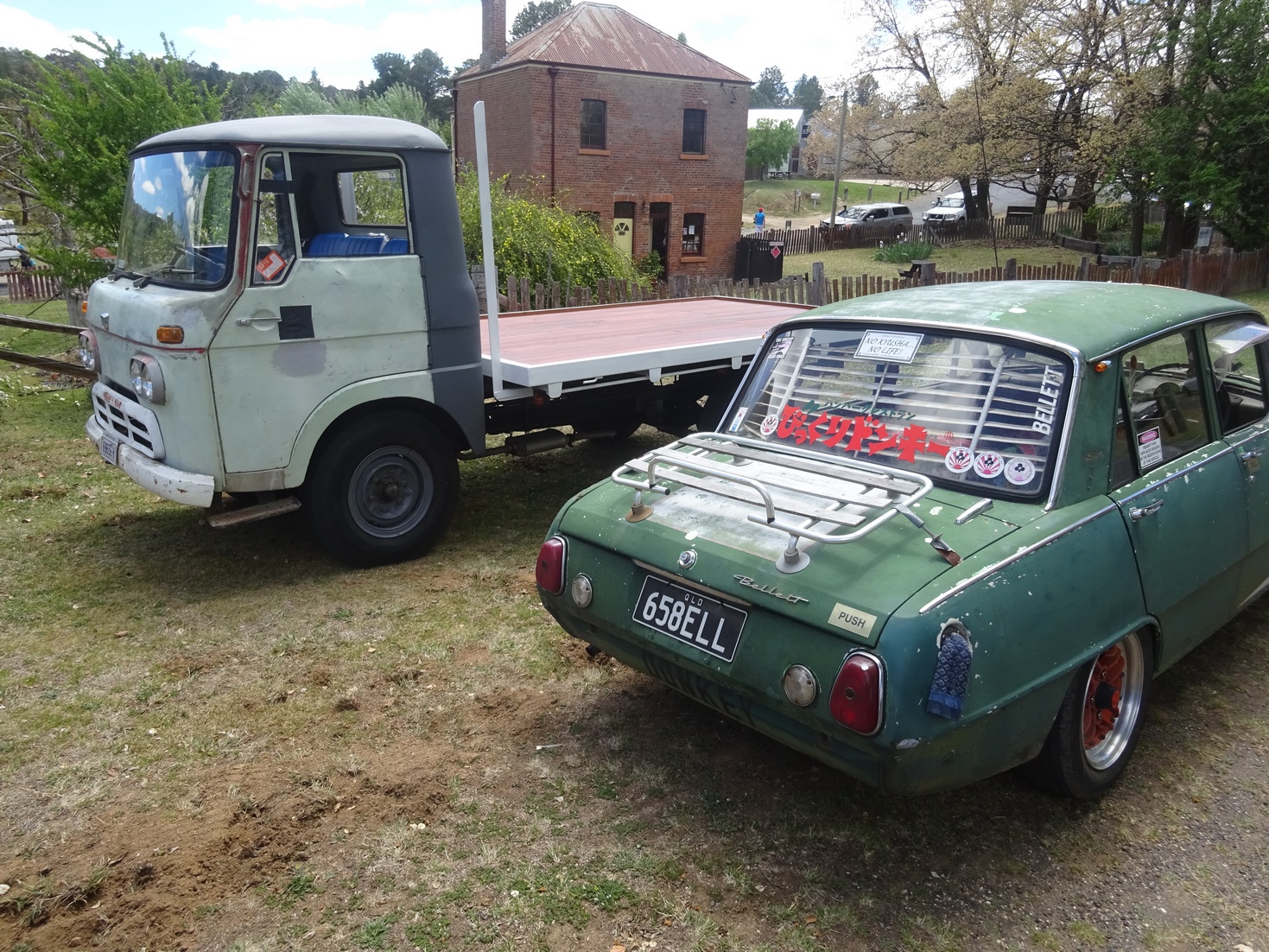 Car(s): Doris, AuntyMary, Shrek, Jimmy; GT, Wasp, Flo & Sed unrestos; 65 Elf; 82 Rodeo, 60 TX550, 72 Sport, & a Sigma.