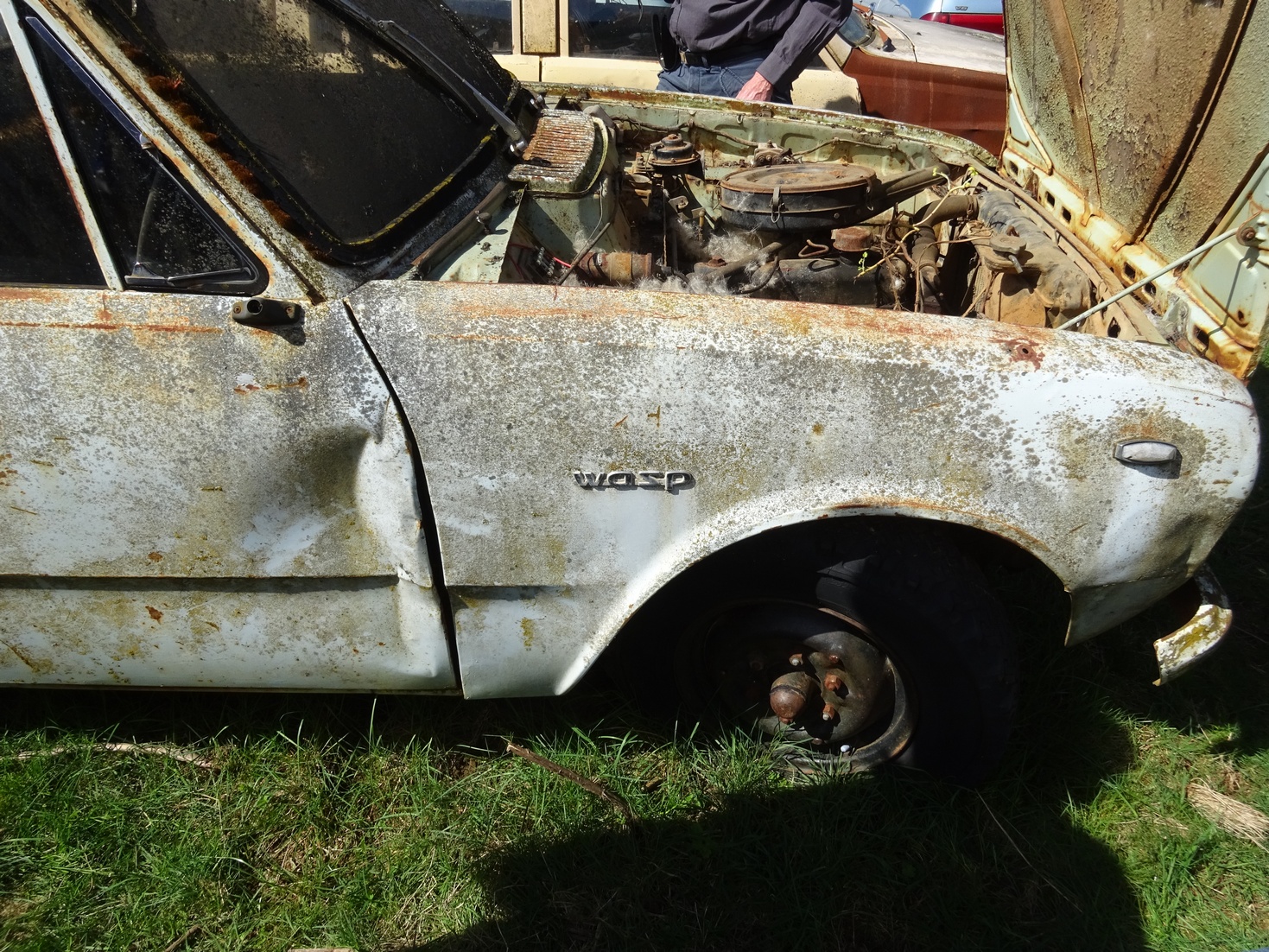 67GT wrote: Gee Sticky, I’d hate to be your “lady interest” . WHAT A TEASE No time for a lady interest mate...... too many cars  and besides, there's not enough room in Donkey Alrighty enough teasin' We met Russel in the main street at Bright , he used to own a wrecking yard there years ago. He stopped to check out Gricey's Florian as he'd never seen one before so we got to chatting. He knew what the Bellett's were and then said "I have a Wasp, the ute version of what you're driving, but I've never seen one of those Florian's before so had to stop and check it out" He then said "I know a bloke in Albury that has a heap of your Isuzu's" Cheryl was standing beside me at this point and said "that's us" Next thing Jim is along side us and organizing a tour for us through Russel's Aladdin's cave and paddock of wonder The Wasp was sold new in Bright and has never left the area (and if my impressions of Russel are correct..... it never will) It has had 3 previous owners to Russel and one of them had beat the tub guards out to fit bigger Landcruiser rims and tyres but...... it still has tail lights, reverse light, fuel cap, tub ID tag and it's tailgate badge The LH front guard was very beat up (would have to be very committed to fix it) and missing it's badge but the RH was fairly good and had it's badge in place. Drivers door a bit banged up too. Interior was all there as was orig motor and radiator. Motor turned over by hand and no reason it wouldn't fire up with a few little thing reconnected. It is BEAUTIFULBut check out the pics and assess it for yourself.....and sorry but NO!! there will be no specific contact information or location details for Russel given to anyone by me. His privacy request will be respected. So with no further adieu, here is Russel's Wasp in all it's wondrous glory Attachment: