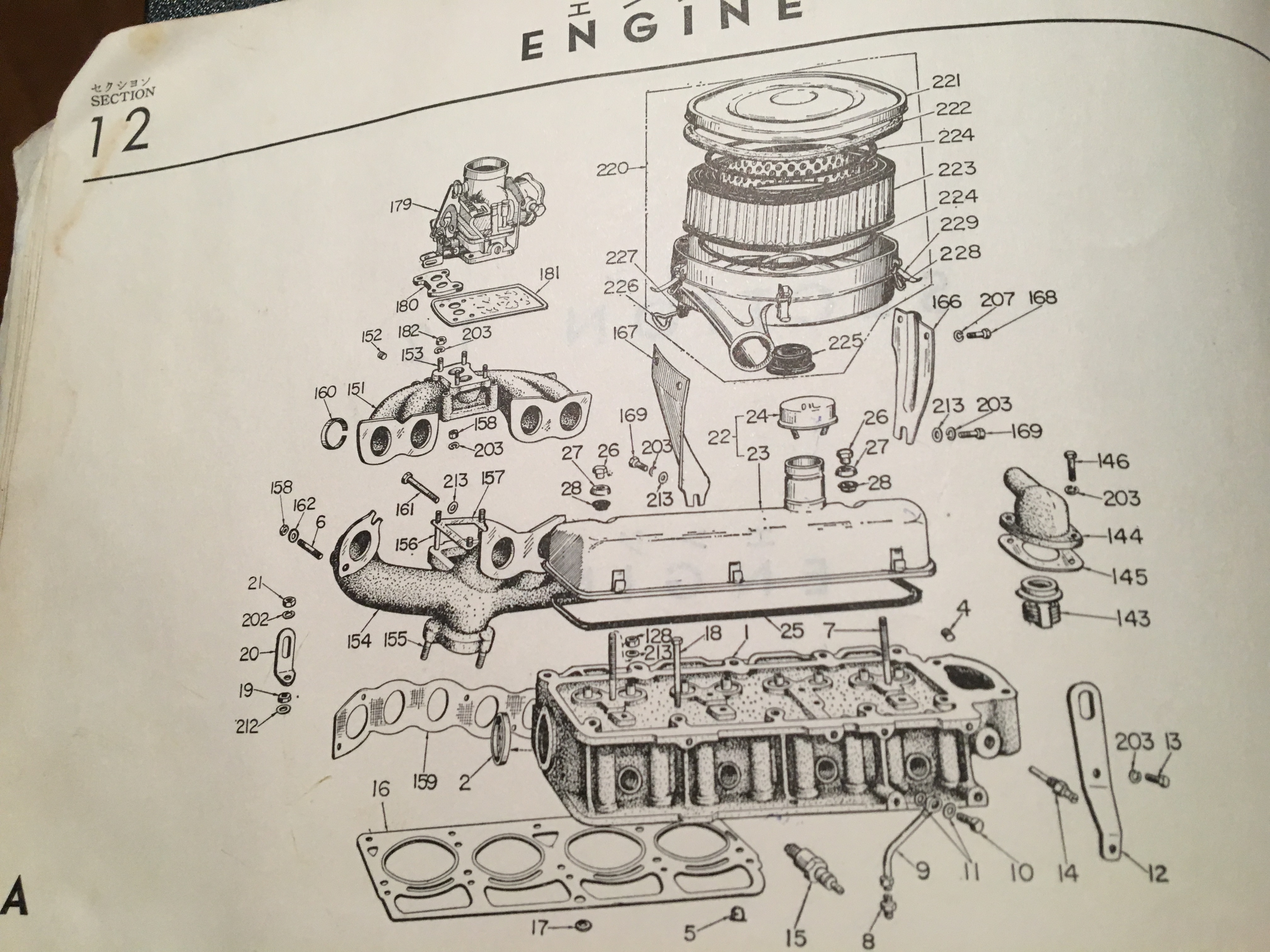 Interesting is, that when I tried to start the engine yesterday, It didn't start. But when I loosened that lever, It started instantly. At the same time, the airbox cover was off. I suppose it was just a coincidence then. You should have a earth cable from the negative terminal on the battery to item 169 in the engine picture. I cannot see it in your pic of the lever under the carburetor. If it is there tighten it up. Could be the reason why it would not start and you played with the lever and it started. You can make a tappet cover gasket from sheet gasket material. Trace around the outside of the cover with a marking pencil. Measure the width of the old gasket and mark that width on the inside of the traced mark. Cut the inner mark first then the outer. If you cannot get the correct thickness for the gasket. Make 2 and glue them together. Or. Glue the sheets together and then trace and cut. Depends on how confident you are in making the gasket. You also may have a problem in getting a sheet material long enough. Go diagonally across the sheet. Dave.