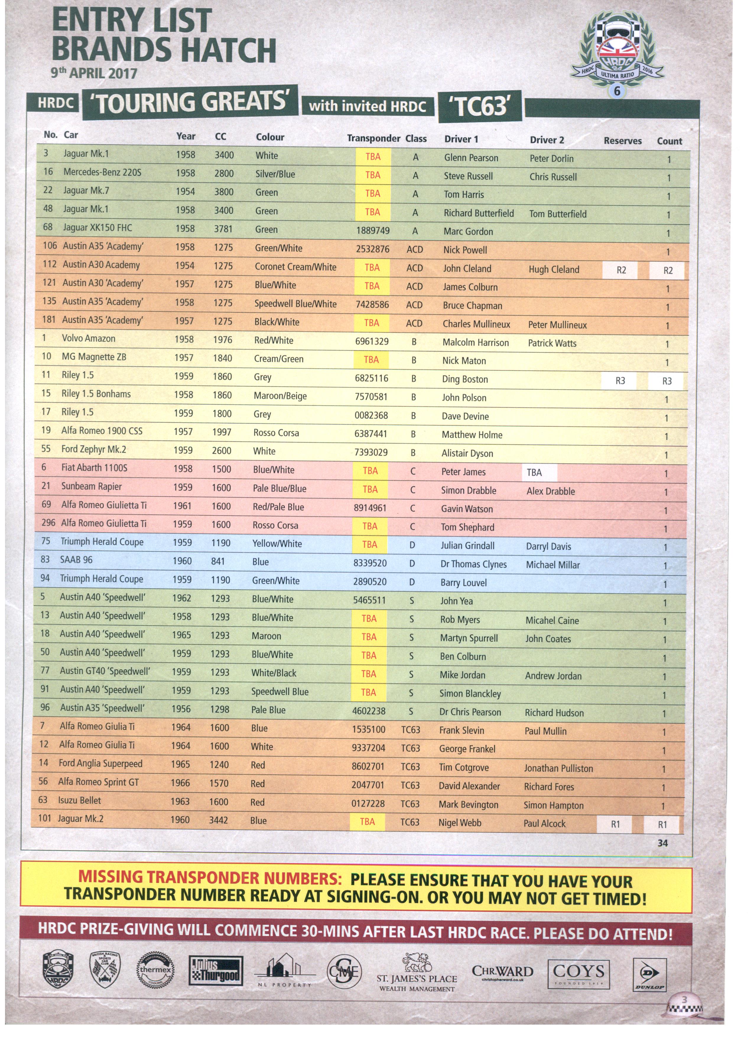 Hooray, the English summer's here...and we've got Brands Hatch this Sunday. And bizarrely we're pretty much ready. My only slight concern is I was unable to get any track time to run the new diff in, so we go to this race with a very fresh final drive. Here's the entry list. Attachment:
