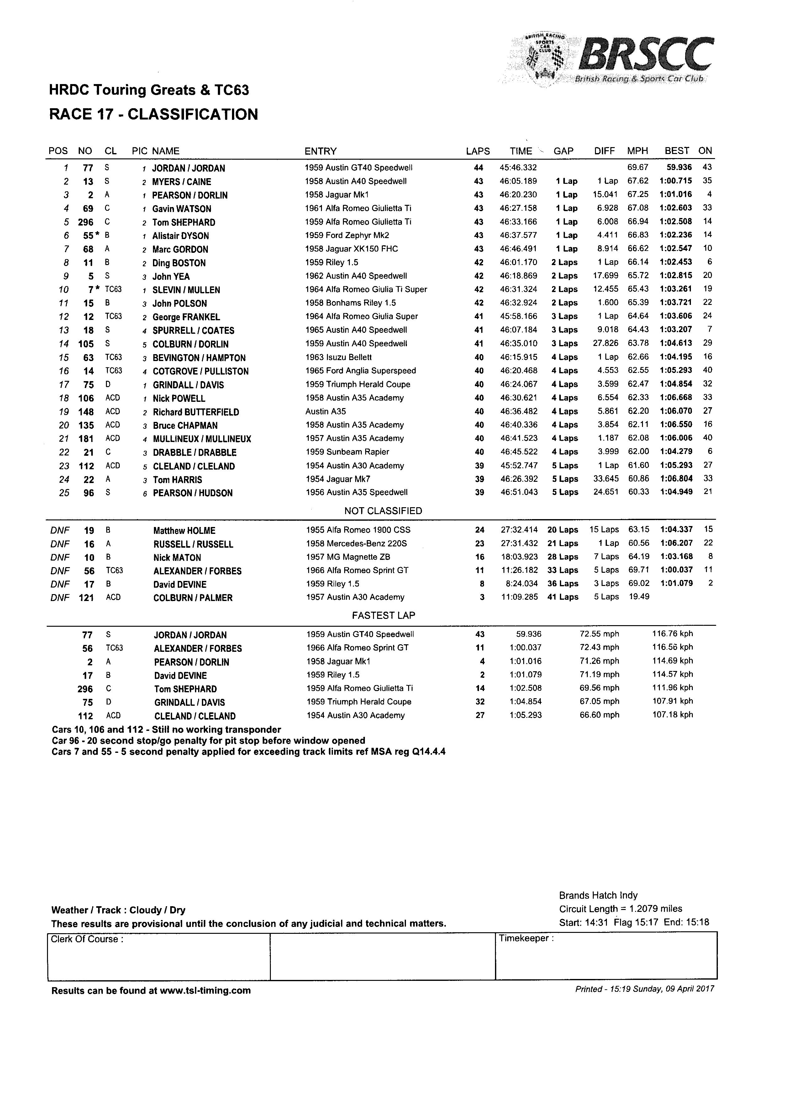Back from Brands, and generally pleased with how we went.....the new diff is excellent, and has already gained us 2 seconds over last year...but of course, the extra speed/revs comes at a cost, and the car ran very hot....which subsequently we couldn't run at maximum attack. We have plans to sort this though. We qualified 15th of 33 and finished 15th. Attachment: