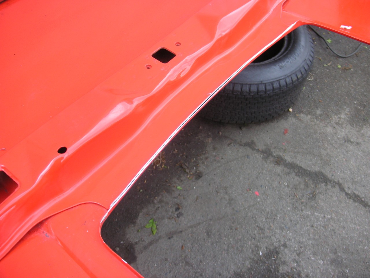 We're not allowed to raise the rear of the bonnet, so we've cut off the bonnet flange and the return flange on the grill. Attachment: