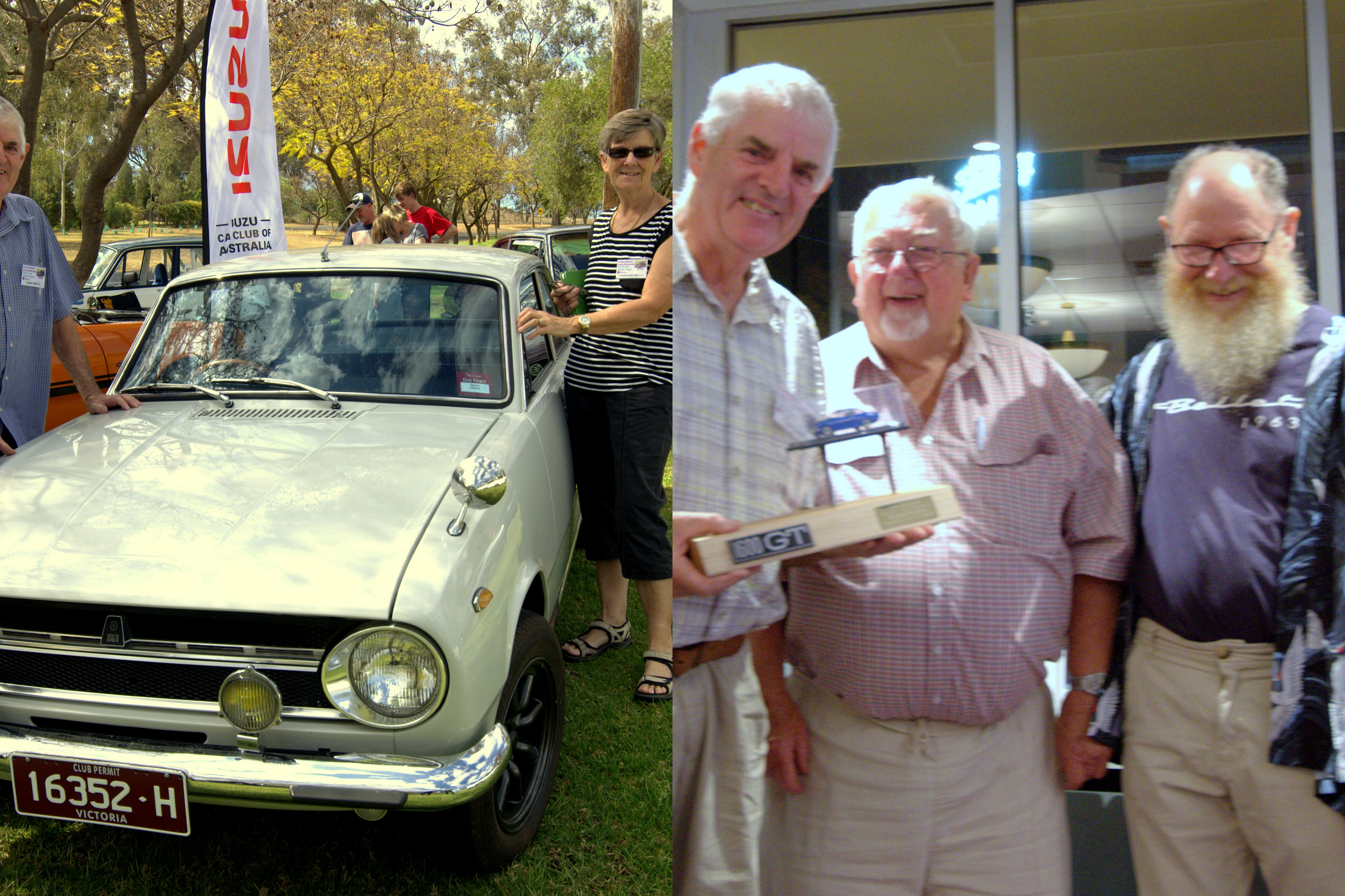 Thanks Julie for all the Pictures, yep, not much time for picture taking 2018 National winners Best GT, Dave Maurice, Runner up best GT, George Cozamanis Best Sedan, Graham and Chloe Hadley Runner up best Sedan, Alan and Marie Cherry Best other Isuzu, Matt Smith , Florian Runner up best other Isuzu, Bob and Loretta Blackwell, 117 coupe Best Modern, Peter and Raena mckill, Dmax ute Peoples choice award, Graham and Chloe Hadley Encouragement award Joshua Boxer Spirit of the Nationals, Ross, Emma and Charlie Smith,