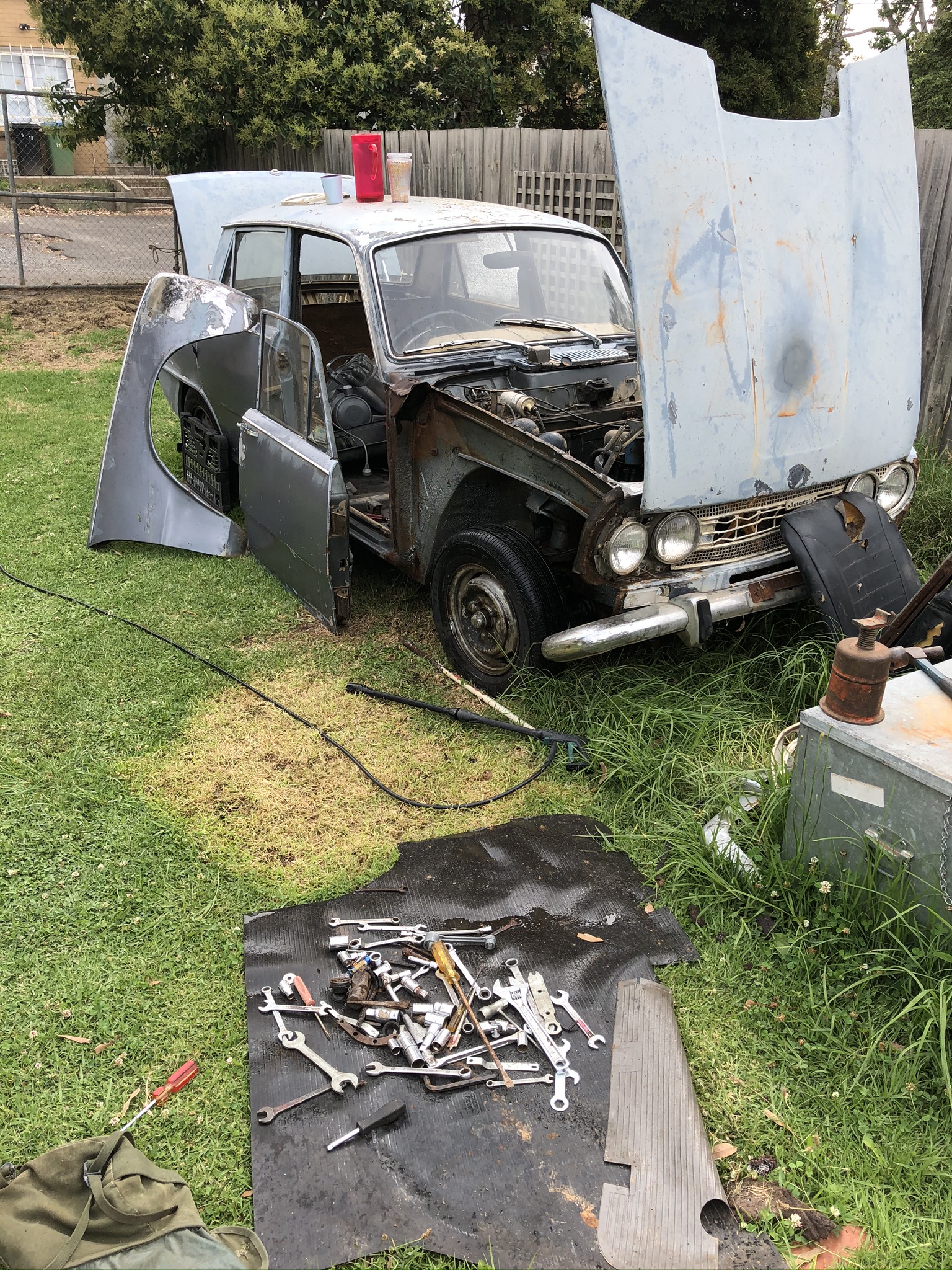 Car(s): Doris, AuntyMary, Shrek, Jimmy; GT, Wasp, Flo & Sed unrestos; 65 Elf; 82 Rodeo, 60 TX550, 72 Sport, & a Sigma.