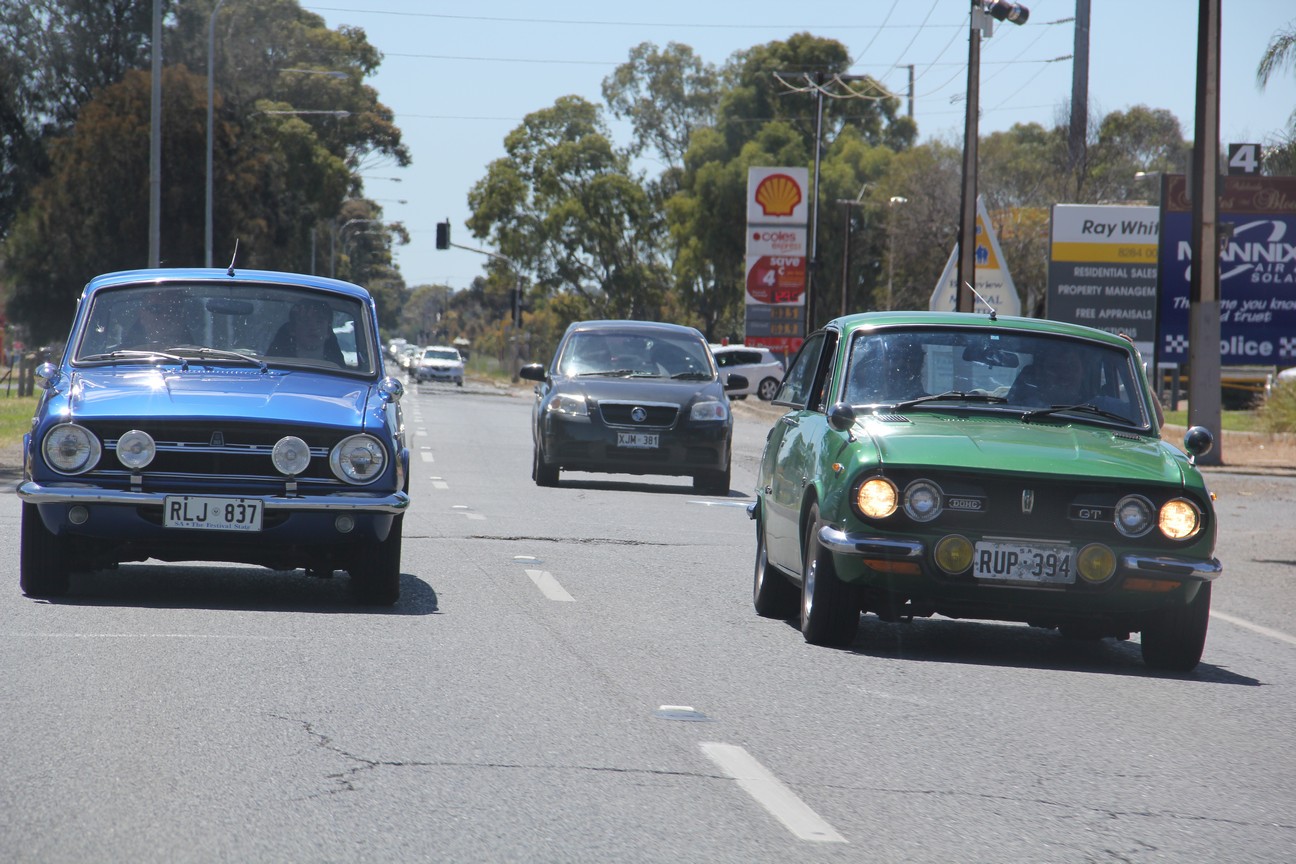 Go Redlegs, go Holdens, GO BELLETTS !! Couldn't have been a better day. Older son Brad made it out of bed and into the GT at the crazy hour, total surprise,  Thanks for you Homies for doing the treck with us. We hunt in packs  Three Belletts barking down the main street of Claire Did miss others though, but great to hear she's a goer Duane. Mr. Flibbles the chief photographer.......great camera work Man  . Craig, you look very comfie and happy in the PR90. We got back to Oz's to ponder over the Fiat 850 in the yard. "Is this the most uncomfortable car to sit in ever built ?" I hear Dave saying.