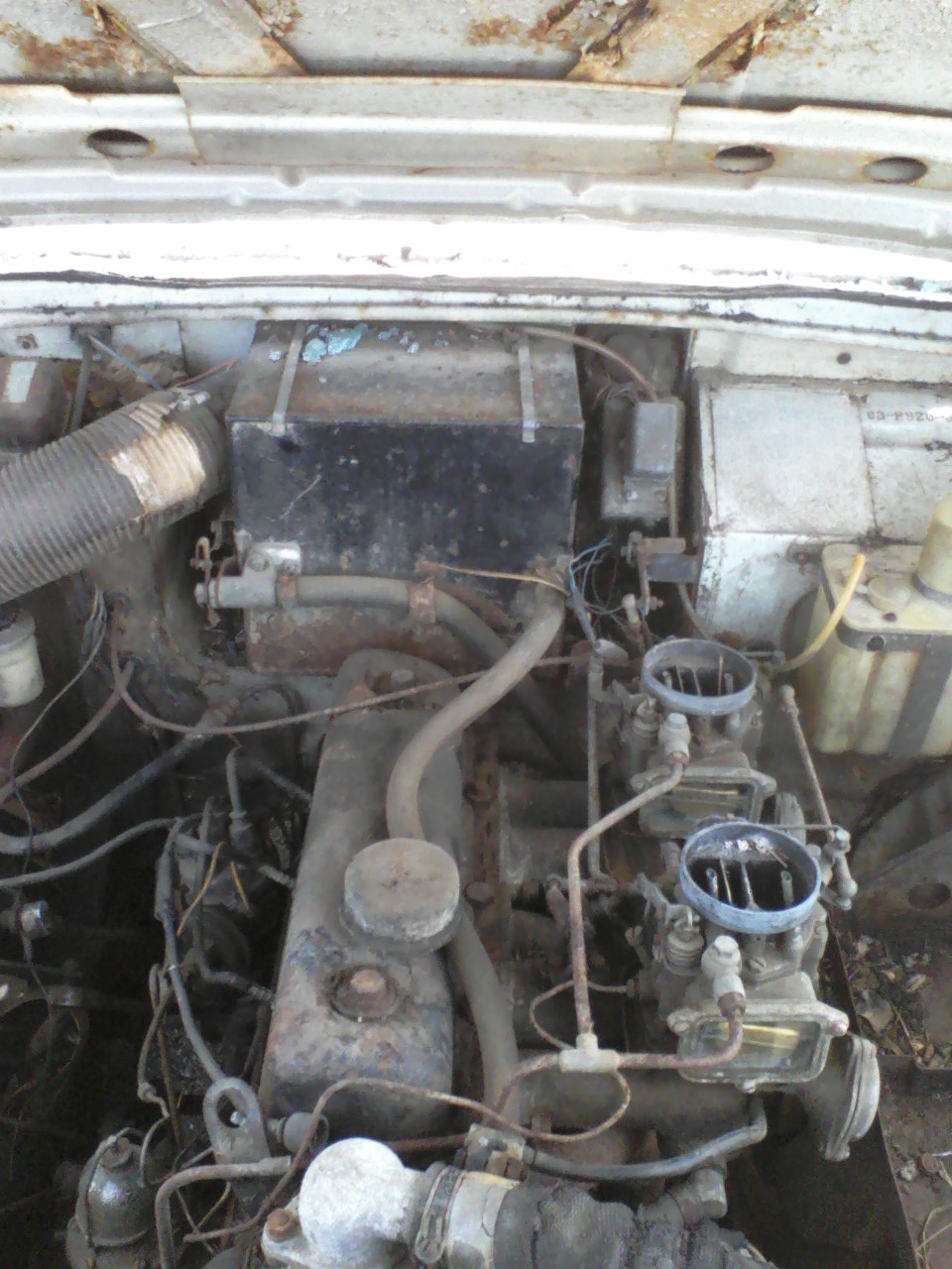 Wooo, twin carbs! They look like Chev Luv carbs, with the vacuum secondary. Where did you find this? In a Bellell? Yeah, hot rod!